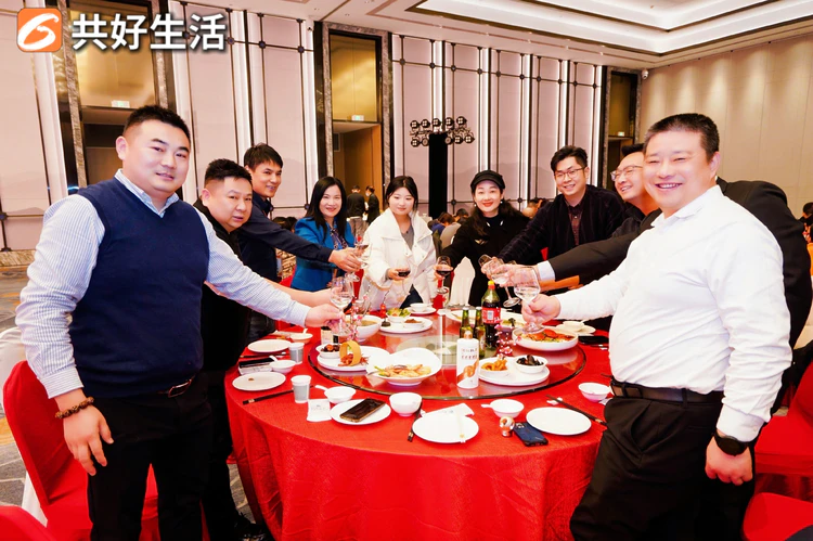 夜幕降临,庆功晚宴温馨开启。暖黄的灯光下,嘉宾与参展商们围坐一堂,觥筹交错间满是欢声笑语。桌上,杜康酒的醇厚、口子窖的绵长、美贺庄园葡萄酒的芬芳交织,安吉白茶的清香沁人心脾,宋蟹与王新记大闸蟹的鲜美让人回味无穷 —— 这些来自参展商的优质产品,不仅丰富了晚宴的味蕾体验,更成为了彼此交流的 “桥梁”。席间,有人分享深耕行业的宝贵经验,有人畅谈跨界合作的创新想法:中科大灵度眼镜的技术专家余绿根与尚晴贝的护眼大使罗静探讨健康护眼新方向,西湖礼物创始人方宝龙与印象陈女装主理人陈刚交流品牌文化传播新思路,九诚科技的穆玉宝则与壹升得水机的赵鹏杰聊起了科技赋能生活的可能性…… 此刻,“共好” 不再是一句口号,而是融入每一次交谈、每一份期许的行动准则,伙伴情谊在温馨的氛围中不断升温,新的合作契机也在不经意间悄然萌芽。