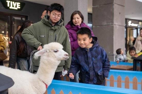 “YEAH!生日狂欢”系列活动更是将氛围推向高潮。1月1日至3日,中央集庆广场的野生动物mini园成为绝对焦点——长沙百联奥莱携手常德野生动物世界,把羊驼、小浣熊、豚鼠等萌宠搬到了市民身边。毛茸茸的萌宠们乖巧可爱,不少小朋友小心翼翼地伸手互动,大人们则忙着抓拍萌态瞬间。