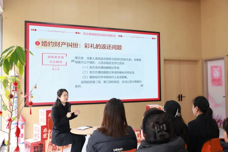 在翡翠社区党群服务中心,一场别开生面的“微宣讲”吸引了众多社区居民。市中院民一庭副庭长鹿文麒以“婚约财产的法律适用问题”为题,用通俗易懂的语言和典型案例,深入解读了彩礼返还、财产分割等群众关心关注的热点问题,引导群众树立正确的婚恋观和法治意识。高新区法院综合审判庭副庭长咸静则以“家事纠纷的多元化解之道”为题,通过以案释法形式,生动讲述了法院在家事调解、心理疏导、多方联动等方面的探索实践,展现了司法温情与调解智慧的有机融合。